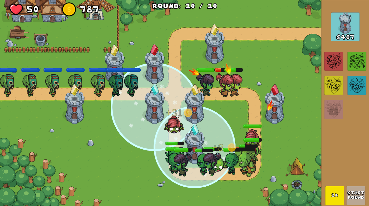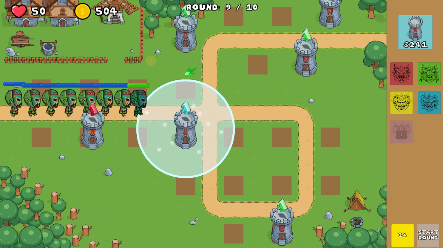 - Dynamic Upgrades: Level up your crystals to increase range and damage.
